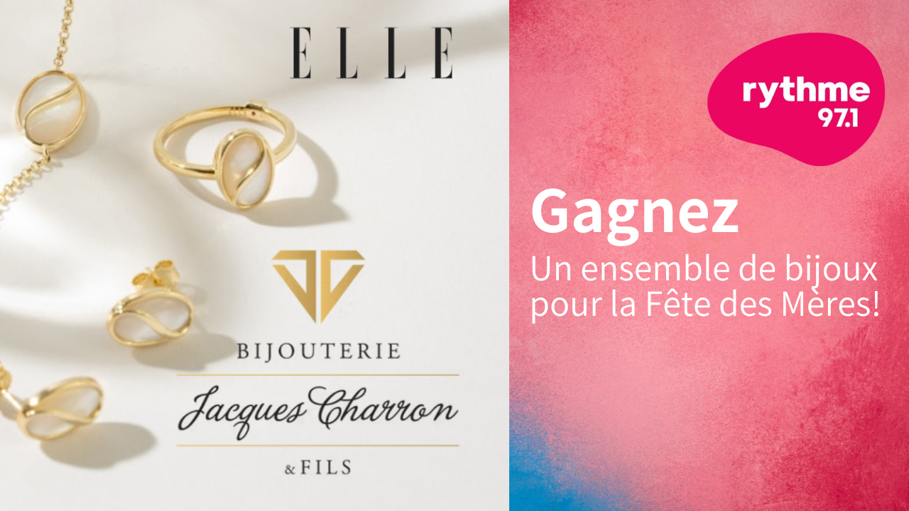 Grâce à la Bijouterie Jacques Charron et Rythme 97.1, cours la chance de gagner un ensemble de bijoux de la marque Elle, d’une valeur de 850$!