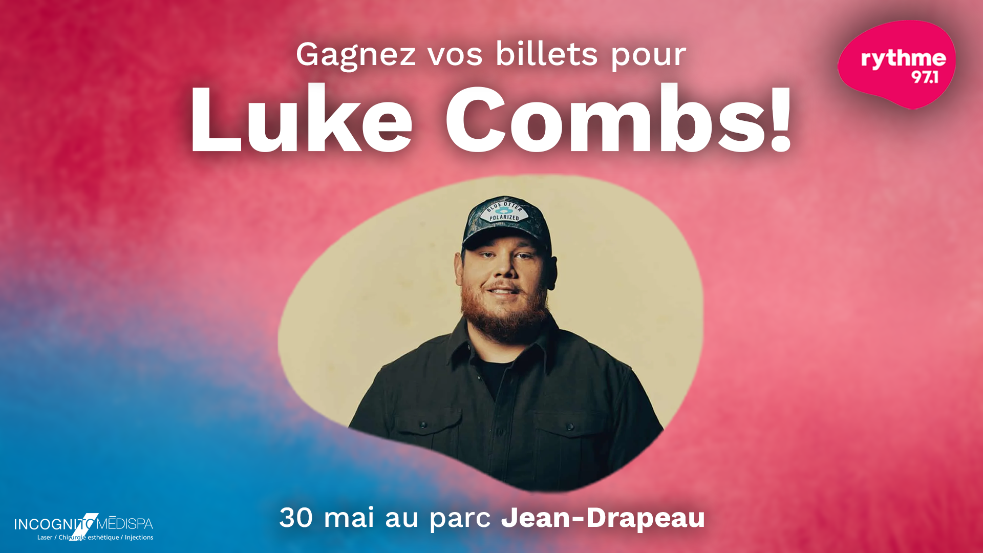 Cette semaine, lorsque vous entendiez le signal en ondes, textez le mot ”Spectacle” au 11-007 pour courir la chance de gagner votre paire de billets pour le spectacle de Luke Combs à Montréal, le 30 mai prochain!